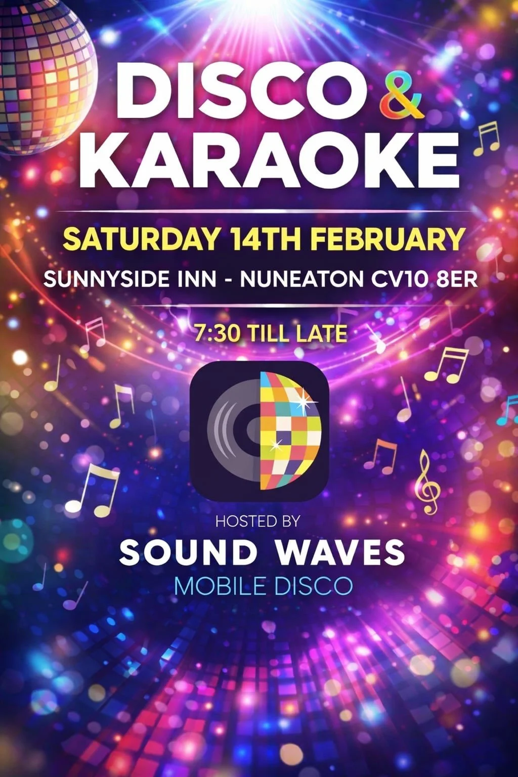Sat 14th OF February Karaoke Disco with the incredible party in the pub Sing and dance along
